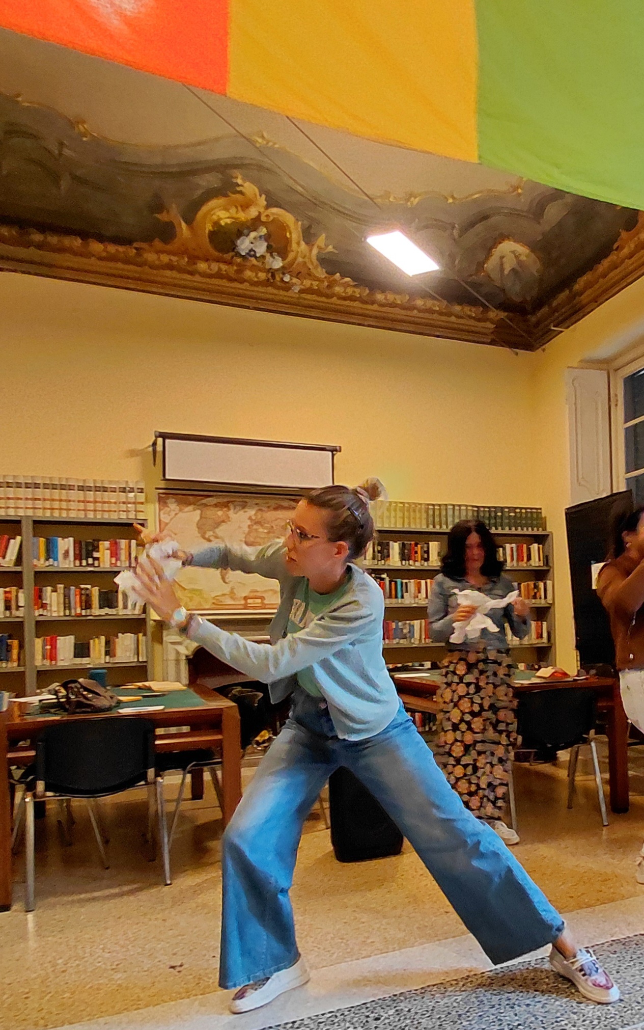 Martedì 30 Settembre, nella splendida cornice della Biblioteca Civica Virgilio Brocchi – Genova Nervi, una bibliotecaria, un’insegnante di scuola primaria, un’assistente sociale, una danzaterapeuta metodo Fux e una programmatrice-web designer hanno improvvisato, danzato, disegnato, scritto, scomposto e ricomposto il loro sentire.